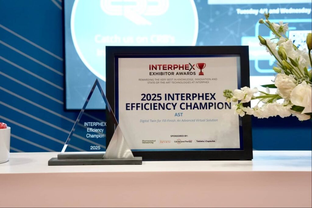 Finally, the AST team was surprised and excited to be presented with an INTERPHEX exhibit award for the second consecutive year. INTERPHEX staff and associated partners, including the American Pharmaceutical Review and Pharmaceutical Outsourcing, awarded AST the 2025 Efficiency Championship for our digital twin solution. The award recognizes products or services that streamline drug development and offer significant time-saving advancements. AST’s digital twin was selected for meeting the “need for integrated efficiencies in processes and supporting the fast pacing of the pharma/bio industry—whether in research, development, or commercial-scale production.”